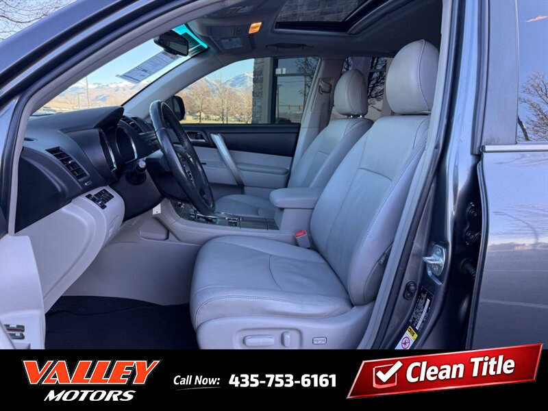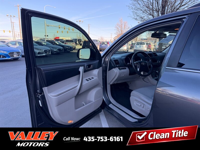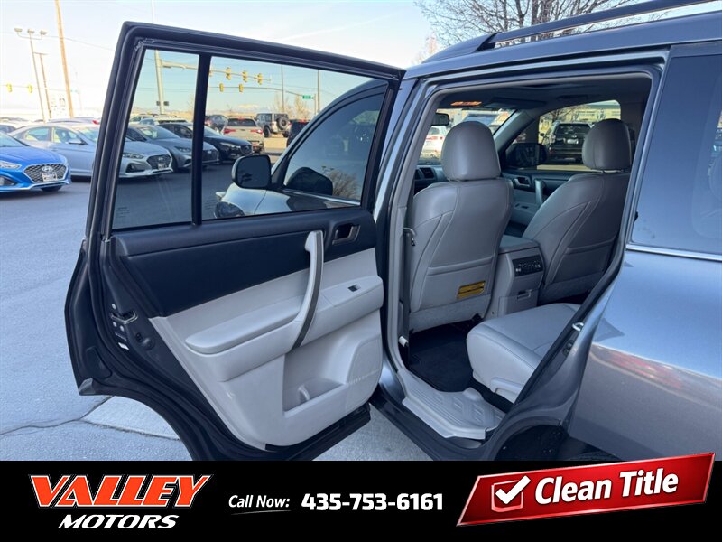 2011 Toyota Highlander — Magnetic Gray Metallic exterior with Ash leather interior. This Highlander is powered by the factory 3.5L V6 (270 hp, 248 lb-ft) and is paired with the OEM automatic transmission. Mileage is below 156,000 miles (averaging under 10,000 miles per year). EPA fuel-economy estimates for this powertrain are approximately 17 MPG city and 22 MPG highway. The vehicle is in excellent overall condition and has a clean CARFAX.